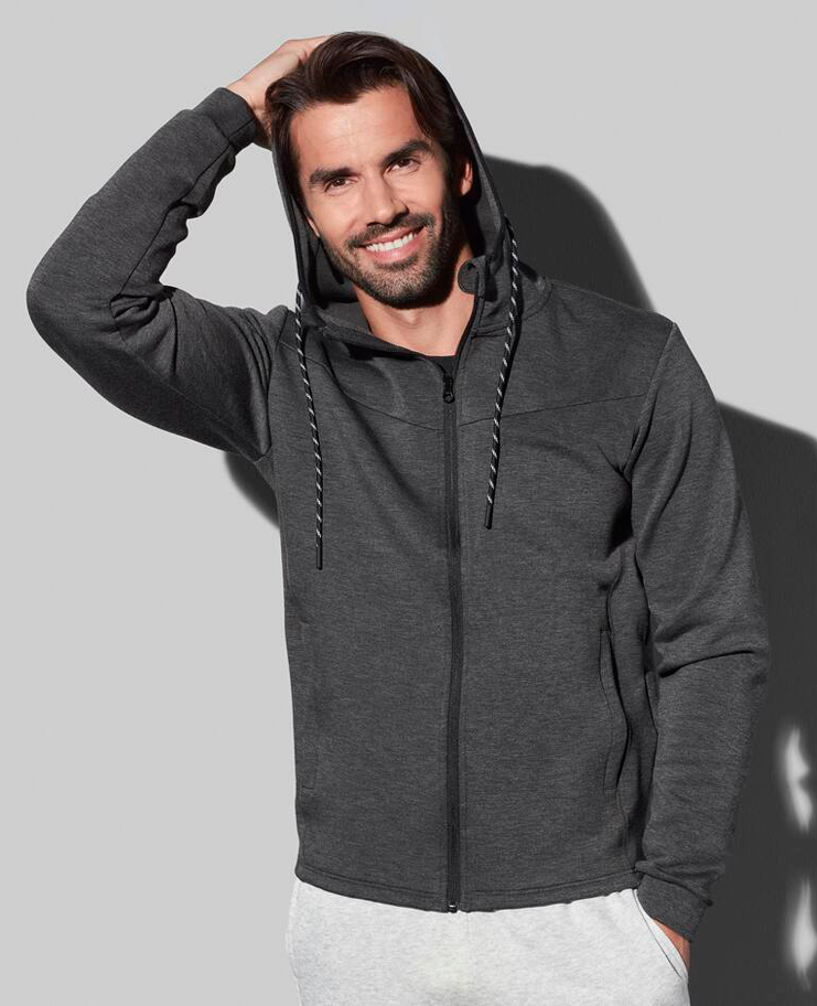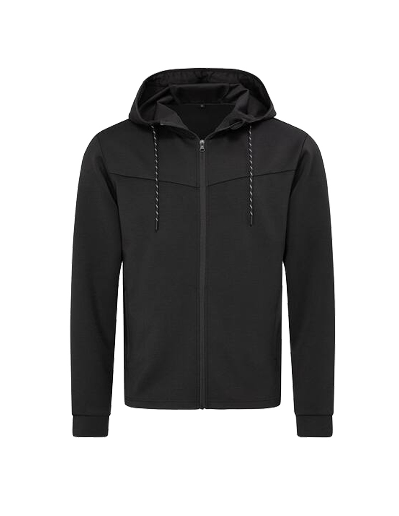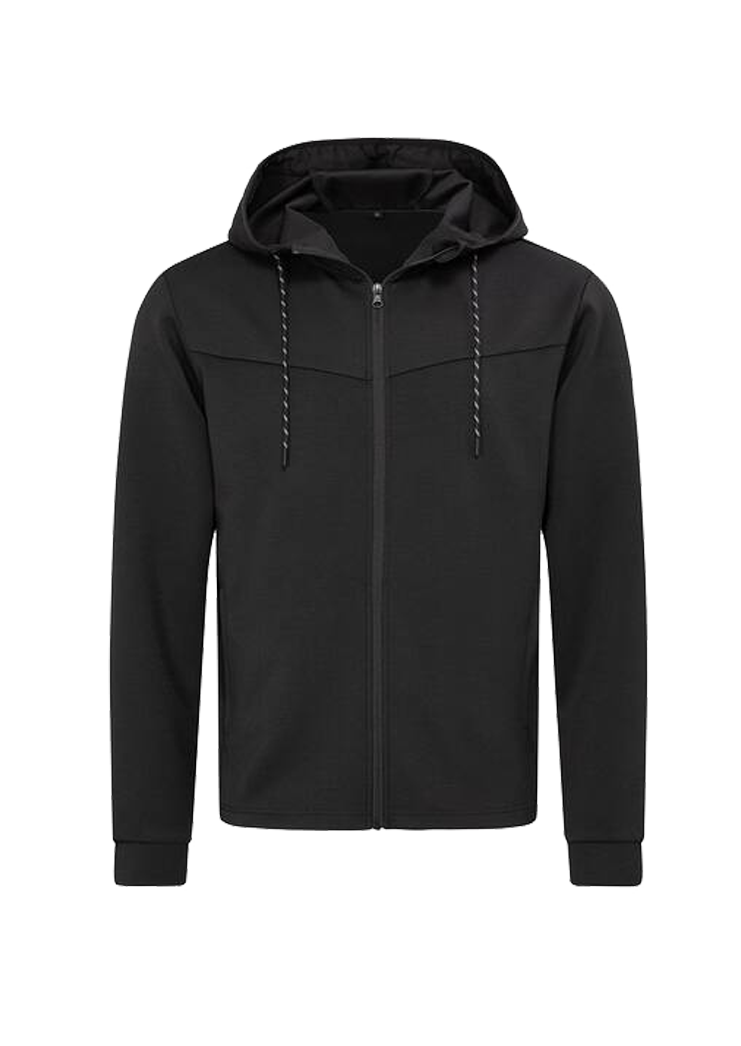 RECYCLED SCUBA JACKET (STEDMAN) – Veste à capuche homme – Tissu fonctionnel écologique, fabriqué à partir de bouteilles plastiques recyclées (8 par veste). Capuche style plongeur avec bande élastiquée et cordon bicolore. Deux poches latérales zippées cachées.